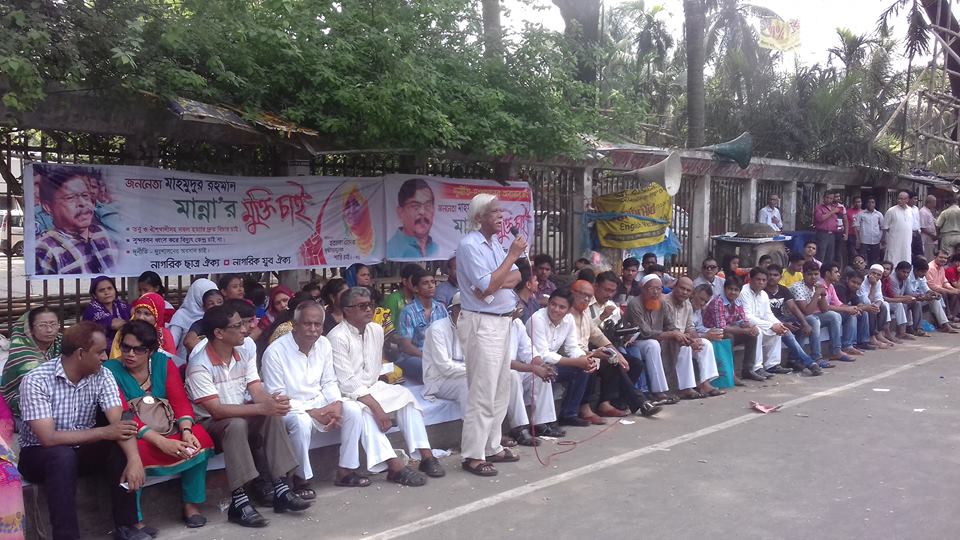 বক্তাগণ, বিনা বিচারে,বিনা চিকিৎসায় দীর্ঘ এক বছরেরও বেশী সময় ধরে কারাবন্দী ডাকসু’র দু’বারের ভিপি,নাগরিক ঐক্যের আহ্বায়ক মাহমুদুর রহমান মান্নার অবিলম্বে নিঃশর্ত মুক্তির দাবি জানান। তারা বলেন,মাহমুদুর রহমান মান্না গণতন্ত্রকামী-মুক্তিকামী মানুষের কন্ঠস্বর। আজকের বাংলাদেশে মাহমুদুর রহমান মান্নার মত সাহসী ও পরিচ্ছন্ন রাজনীতিবিদের খুব বেশী প্রয়োজন।