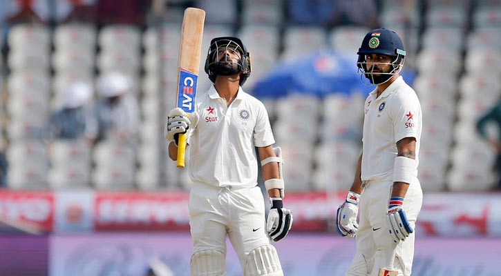 ‘ডাবল সেঞ্চুরি’: বিরাট কোহলি ও আজিঙ্কা রাহানে চতুর্থ উইকেটে অবিচ্ছিন্ন দুইশ’ রানের জুটি গড়েছেন। এ প্রতিবেদন লিখা পর্যন্ত দুই ডানহাতি ব্যাটসম্যান স্কোরবোর্ডে ২০৯ রান জমা করেছেন।