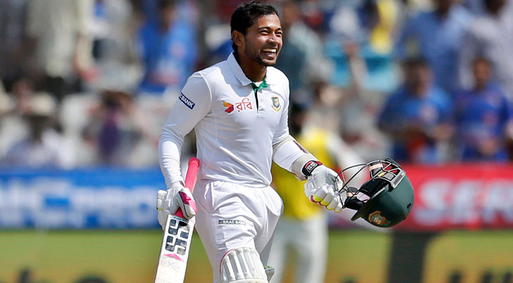 মুশফিকের পঞ্চম সেঞ্চুরি: উমেশ যাদবের লেগ স্ট্যাম্পের বাইরের বল। ফ্লিক করলেন মুশফিকুর রহিম। বল চলে গেল ফাইন লেগে। ইশান্ত শর্মা ড্রাইভ দিয়ে বল আটকাতে গেলেন। কিন্তু পারলেন না। দুই-তিন বাউন্সে বল গেল বাউন্ডারিতে। ৯৬ থেকে মুশফিক পৌঁছে গেলেন শতরানে। ক্যারিয়ারের পঞ্চম ও ভারতের বিপক্ষে দ্বিতীয় টেস্ট সেঞ্চুরি টাইগার দলপতির। জমাট ব্যাটিং ও অসাধারণ ধৈর্যর পরীক্ষা দিয়ে ল্যান্ডমার্কে পৌঁছান মুশফিক। ১৩৩ বলে হাফ-সেঞ্চুরির স্বাদ পাওয়া মুশফিক সেঞ্চুরিতে পৌঁছান ২৩৫ বলে।