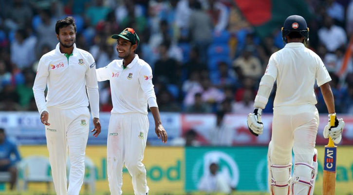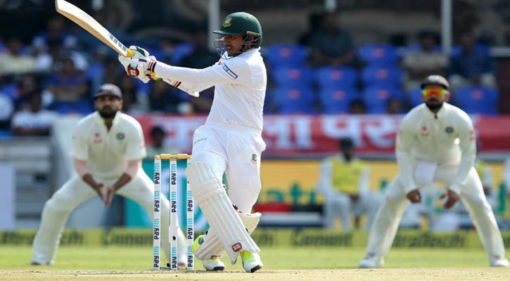 সাকিবের ‘প্রথম’ উইকেট: প্রথম ইনিংসে ২৪ ওভার বোলিং করেও সাকিব আল হাসান ছিলেন উইকেটশূণ্য। দ্বিতীয় ইনিংসে তৃতীয় ওভারেই পেলেন প্রথম সাফল্য। ভারতের অধিনায়ক বিরাট কোহলির উইকেট নিয়েছেন বাঁহাতি এ অলরাউন্ডার। সাকিবের হাওয়ায় ভাসানো বল এগিয়ে এসে মারতে গিয়ে মিড উইকেটে ক্যাচ দেন বিরাট। লাফিয়ে বল তালুবন্দি করেন মাহমুদউল্লাহ রিয়াদ।