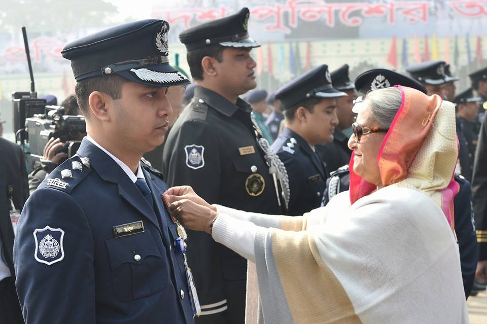 ছবিঃ রাহুল পাটওয়ারীকে “পিপিএম ব্যাজ” প্রদান করছেন প্রধানমন্ত্রী শেখ হাসিনা।