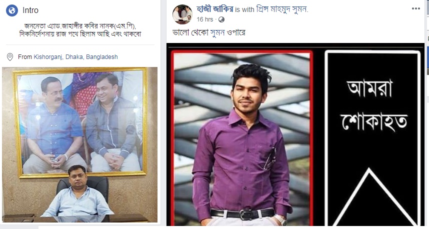 ছবিঃ স্থানীয় রাজনৈতিক ব্যক্তি হাজী জাকিরের টাইমলাইন থেকে নেয়া।