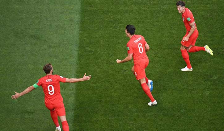 ৩০ মিনিটে প্রথম কর্নার পেয়েই এগিয়ে যায় ইংল্যান্ড। অ্যাশলে ইয়াংয়ের কর্নার থেকে আসা বল বক্সের মধ্যে জটলা থেকে হেডে সুইডেনের জালে পাঠান মাগুইয়ার। ইংল্যান্ডের হয়ে এটাই তার প্রথম গোল। প্রথম গোলের জন্য এর চেয়ে বড় মঞ্চ আর পেতেন না! এই বিশ্বকাপে ইংল্যান্ডের ১০ গোলের ৮টিই হলো সেট পিস থেকে।