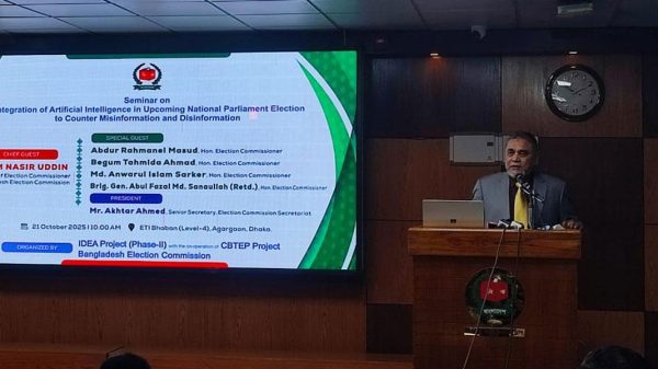মঙ্গলবার (২১ অক্টোবর) রাজধানীর নির্বাচনী প্রশিক্ষণ ইনস্টিটিউটে কৃত্রিম বুদ্ধিমত্তা (এআই) সংক্রান্ত এক কর্মশালায় প্রধান অতিথির বক্তব্যে তিনি এসব কথা বলেন।