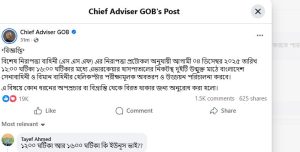 বিজ্ঞপ্তিতে এ বিষয়ে কোনো ধরনের অপপ্রচার বা বিভ্রান্তি থেকে বিরত থাকার জন্য অনুরোধ করা হয়।