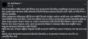 শনিবার দিবাগত রাত সাড়ে ১০টার দিকে ফেসবুকে এক পোস্টে তিনি এ কথা বলেন।