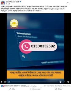 পোস্টে একটি ভিডিও প্রকাশ করে বলা হয়েছে, জাতীয়, ব্যক্তিগত ও প্রাতিষ্ঠানিক পর্যায়ে গুজব, মিসইনফরমেশন ও ডিসইনফরমেশন বিষয়ে অভিযোগ গ্রহণের জন্য হটলাইন নম্বর ০১৩০৮৩৩২৫৯২ চালু করা হয়েছে।