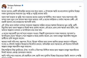 মুসলিম বিশ্বের সুখ, শান্তি ও সমৃদ্ধি কামনা তারেক রহমানের
