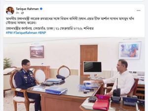 প্রধানমন্ত্রী তারেক রহমানের সঙ্গে বিমানবাহিনী প্রধানের সৌজন্য সাক্ষাৎ