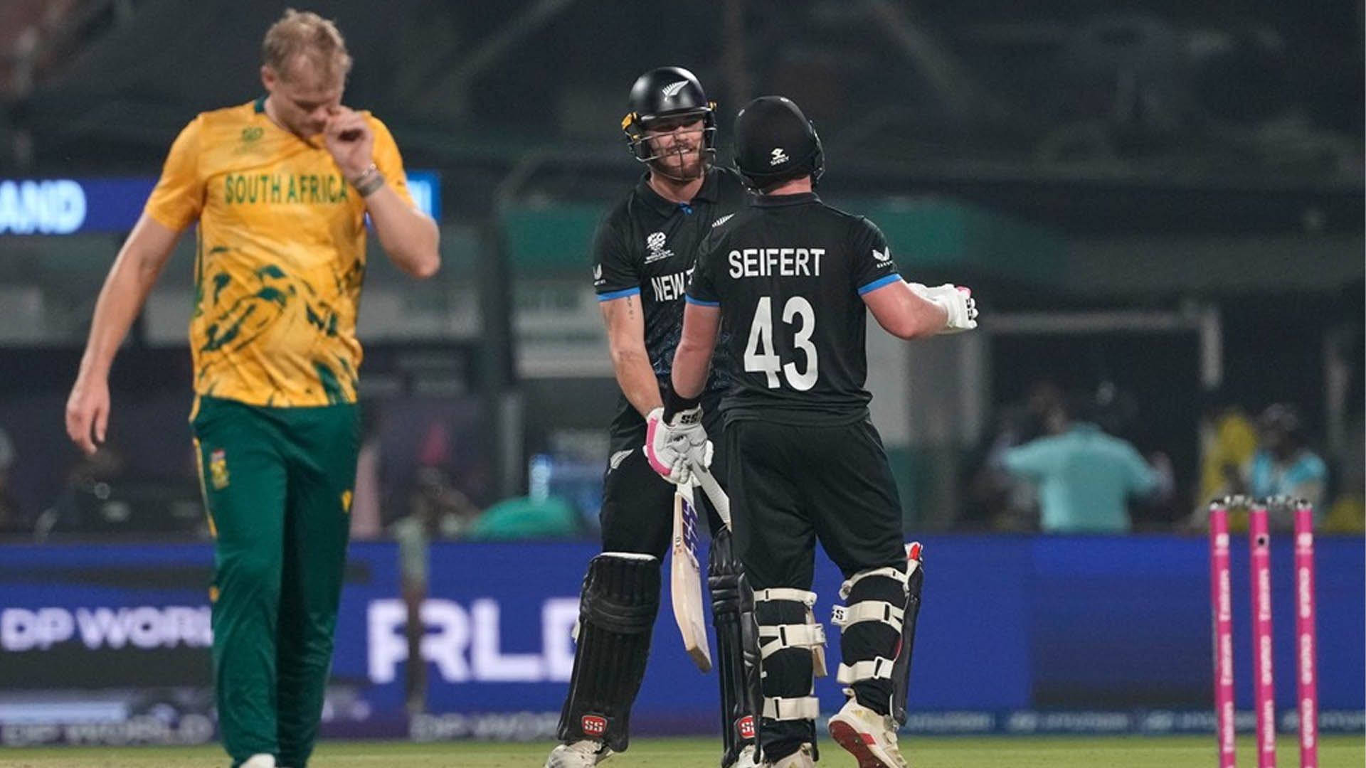এর আগে ইডেন গার্ডেন্সে ফাইনাল নিশ্চিতের মিশনে রান তাড়ায় নেমে প্রোটিয়াদের প্রতিরোধের কোনো সুযোগই দেননি দুই কিউই ওপেনার সেইফার্ট ও অ্যালেন। পাওয়ার প্লেতেই ৮৪ রান তুলে জয়ের ভিত গড়ে দেন তারা। এরপর আর কোমর সোজা করে দাঁড়াতে পারেনি এইডেন মার্করামের দল। দশম ওভারের প্রথম বলে সেইফার্টকে কাগিসো রাবাদা বোল্ড করলেও ম্যাচ ততক্ষণে পুরোপুরি নিউজিল্যান্ডের নিয়ন্ত্রণে চলে যায়। ৩৩ বলে ৭ চার ও ২ ছক্কায় ৫৮ রান করে দলীয় ১১৭ রানে বিদায় নেন সেইফার্ট।