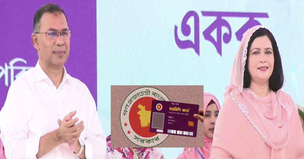 স্বল্প আয়ের মানুষের আর্থিক নিরাপত্তা নিশ্চিত করতে ‘ফ্যামিলি কার্ড’ কর্মসূচির উদ্বোধন করেছেন প্রধানমন্ত্রী তারেক রহমান।
