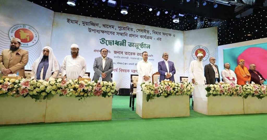 দেশের ধর্মীয় সম্প্রীতি ও সামাজিক নিরাপত্তার এক অনন্য মাইলফলক হিসেবে ইমাম, মুয়াজ্জিন এবং বিভিন্ন ধর্মের ধর্মীয় নেতাদের সরকারি সম্মানি প্রদান কার্যক্রমের শুভ উদ্বোধন করেছেন প্রধানমন্ত্রী তারেক রহমান।
