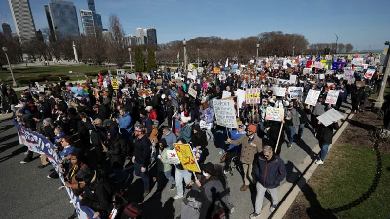 প্রতিবাদকারীরা অভিযোগ করেছেন, প্রেসিডেন্ট ক্ষমতার সীমা লঙ্ঘন করে গুরুত্বপূর্ণ সিদ্ধান্ত নিচ্ছেন-বিশেষ করে ইরানের বিরুদ্ধে চলমান যুদ্ধ এবং সামরিক পদক্ষেপগুলো কংগ্রেসের অনুমোদন ছাড়াই পরিচালিত হচ্ছে। এতে যুক্তরাষ্ট্রের গণতান্ত্রিক কাঠামো ও আইনের শাসন লঙ্ঘন নিয়ে গুরুতর প্রশ্ন তৈরি হয়েছে।