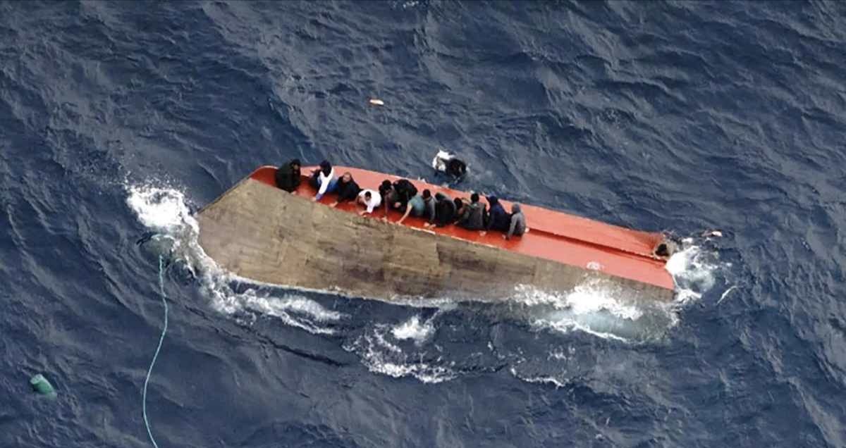 সেই বিমান থেকে তোলা ছবি ও ভিডিওচিত্রে দেখা গেছে, সাগরে উল্টে যাওয়া একটি কাঠের নৌকার তলদেশের ওপর আশ্রয় নিয়েছেন কয়েক জন অভিবাসনপ্রত্যাশী।