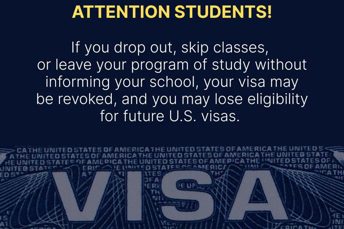 বার্তায় উল্লেখ করা হয়, ‘আপনি যদি পড়াশোনা ছেড়ে দেন, ক্লাসে অনুপস্থিত থাকেন, অথবা আপনার শিক্ষাপ্রতিষ্ঠানকে না জানিয়ে আপনার অধ্যয়ন কর্মসূচি থেকে সরে দাঁড়ান, তাহলে আপনার শিক্ষার্থী ভিসা বাতিল হতে পারে এবং ভবিষ্যতে যুক্তরাষ্ট্রের ভিসা পাওয়ার যোগ্যতাও হারাতে পারেন। সম্ভাব্য জটিলতা এড়াতে সবসময় আপনার ভিসার শর্ত মেনে চলুন।