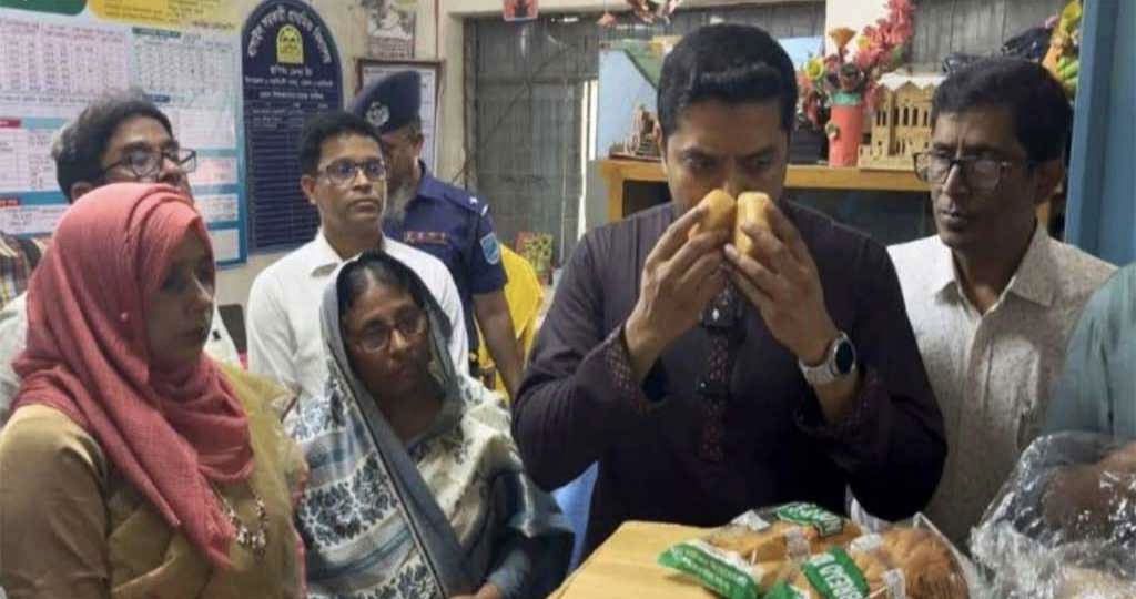 পরিদর্শনের সময় শিক্ষার্থীদের জন্য সরবরাহ করা বনরুটিতে অস্বাভাবিক গন্ধ সন্দেহ হওয়ায় দুটি নমুনা সংগ্রহ করে ল্যাবে পরীক্ষার জন্য পাঠানো হয়।