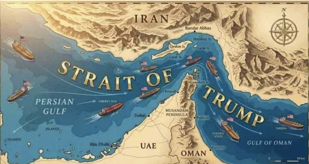 বৃহস্পতিবার ৩০ এপ্রিল নিজের সামাজিক মাধ্যম ট্রুথ সোশ্যালে একটি মানচিত্র পোস্ট করেন তিনি। সেখানে ‘Strait of Hormuz’-এর জায়গায় লেখা ‘Strait of Trump’ বা ‘ট্রাম্প প্রণালি’। কোনো ক্যাপশন নেই, শুধু মানচিত্র।