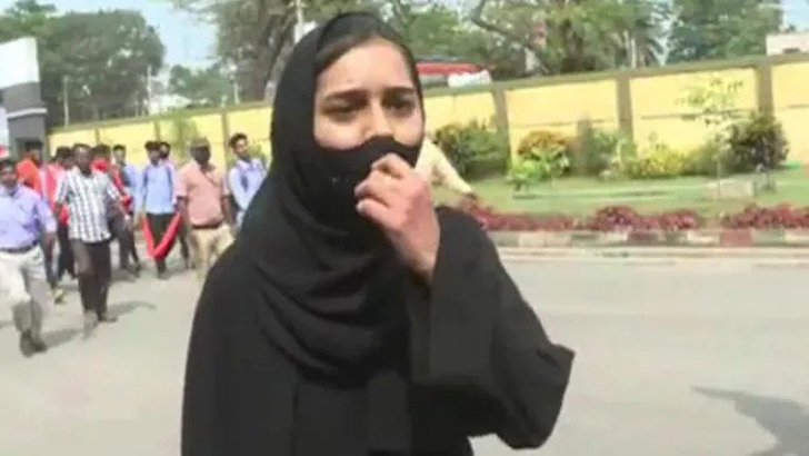 বোরকা পরিহিতা ছাত্রীর সাহসী প্রতিবাদ