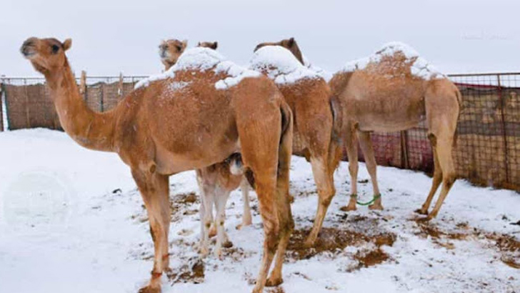 শীতে কাঁপছে সৌদি আরব, জমে যাচ্ছে উটের চোখের পানিও