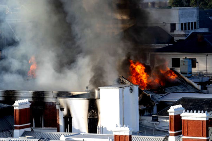 দক্ষিণ আফ্রিকার সংসদ ভবনে আগুন