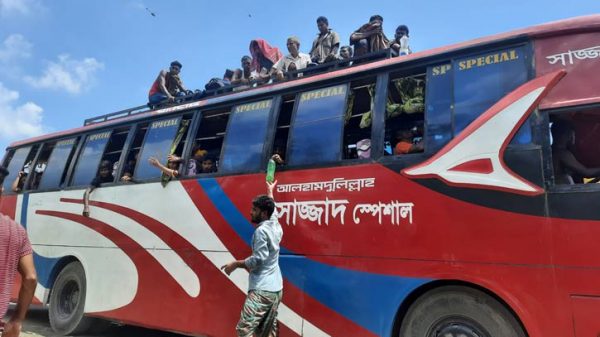 যানজটে আটকা তৃষ্ণার্তদের বিনামূল্যে দেওয়া হচ্ছে পানি ও ফল