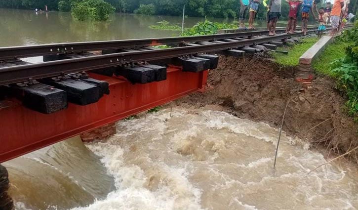 বন্যায় সড়ে গেছে মাটি, মোহনগঞ্জের সঙ্গে রেল যোগাযোগ বন্ধ
