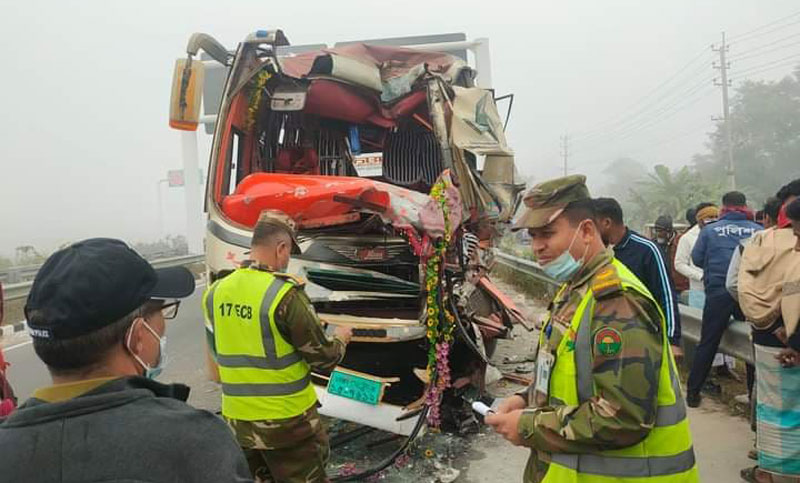 কাভার্ডভ্যানে যাত্রীবাহী বাসের ধাক্কায় নিহত ১, আহত ১০