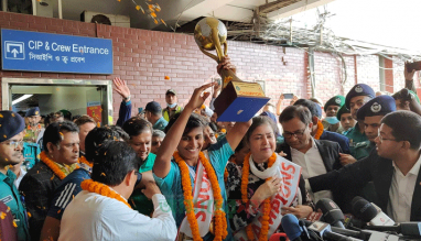 ঐতিহাসিক শিরোপা নিয়ে দেশে ফিরলেন বাঘিনীরা