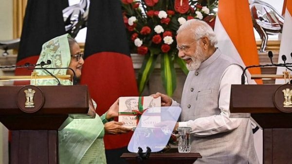 মোদিকে বঙ্গবন্ধুর ঐতিহাসিক ভাষণের বই উপহার দিলেন শেখ হাসিনা