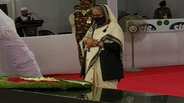 বঙ্গবন্ধুর প্রতিকৃতিতে প্রধানমন্ত্রীর শ্রদ্ধা