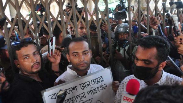 কমলাপুর স্টেশনে ঢুকতে না পেরে সামনেই অবস্থান রনির