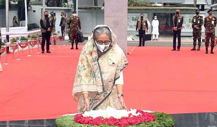 বঙ্গবন্ধুর প্রতিকৃতিতে প্রধানমন্ত্রীর শ্রদ্ধা