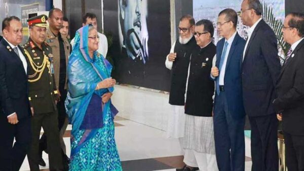 বঙ্গবন্ধুর প্রতিকৃতিতে আরাফাতের শ্রদ্ধা