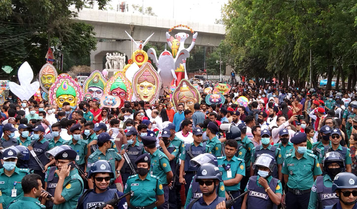 মঙ্গল কামনায় শেষ হ‌লো প‌হেলা বৈশা‌খের মঙ্গল শোভাযাত্রা