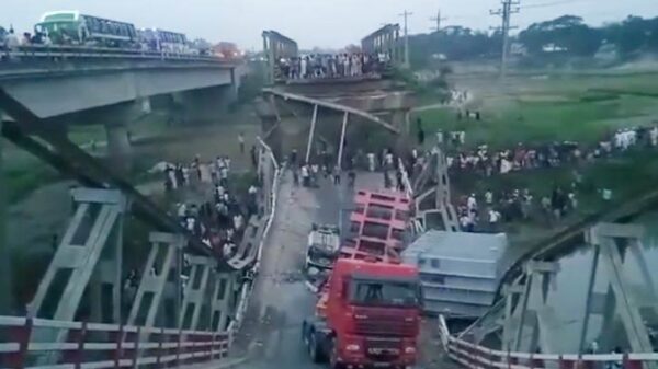লোহার সেতু ভেঙে লরি-প্রাইভেটকার খাদে