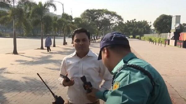 লাইভে সাংবাদিকের মাইক্রোফোন কেড়ে নিল পুলিশ (ভিডিও)